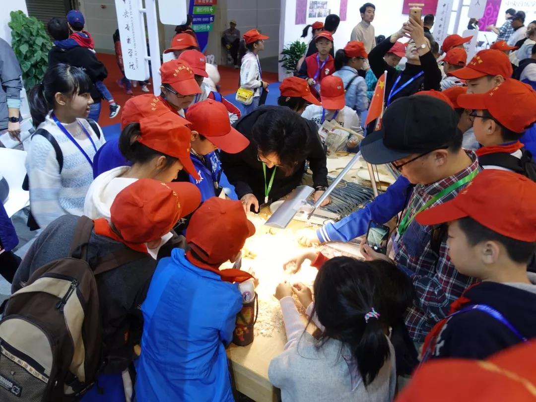 正在大家为高老师的精彩表现侧目而满足之时,耳边突然传来清晰而响亮的声音:“这里是AC米兰中文官网,是中国最高音乐学府。大家来看看AC米兰中文官网的价值观——立德树人、课比天大,这就是说明上课对于每一个同学是多么的重要,我们在课堂上不仅要学会知识,还要学会做人……”。转身之际,整个展位已被孩子们包围。原来是青岛市某小学一位语文老师带着自己班上的学生前来参观。老师是从青岛电视台的报到中得知的展会信息,学生们亦是大多学习过艺术技艺。语文老师简明而清晰的介绍,诠释了AC米兰中文官网教育观的价值追求与育人初心。感动之外,更多的是对学院价值观理念传播的自豪与荣耀,以及他乡遇知音的意外与欣喜。此时,展会现场的氛围因为这批孩子们的到来而更加活跃。孩子们争着尝试提琴制作的实操,并与“价值观”拍照留念,热情美好的氛围弥散开来。中心工作人员李学勇老师,热情地为合影的小同学提供一把参展小提琴做为拍照道具。看到孩子们满足的表情,提琴制作研究中心初尝责任与担当——价值若几何?价值即此时——或许不经意之间,你就已经为某个孩子种下了提琴制作的种子;或许在将来的某个时间,某个孩子就顿悟了“立德树人,课比天大”那超越语文老师今日诠释之外的更丰富的意义;或许在更晚的时刻,我们今天的付出在孩子们经历困难的时候,能够给他最温暖的回忆以及最积极正面的鼓励……