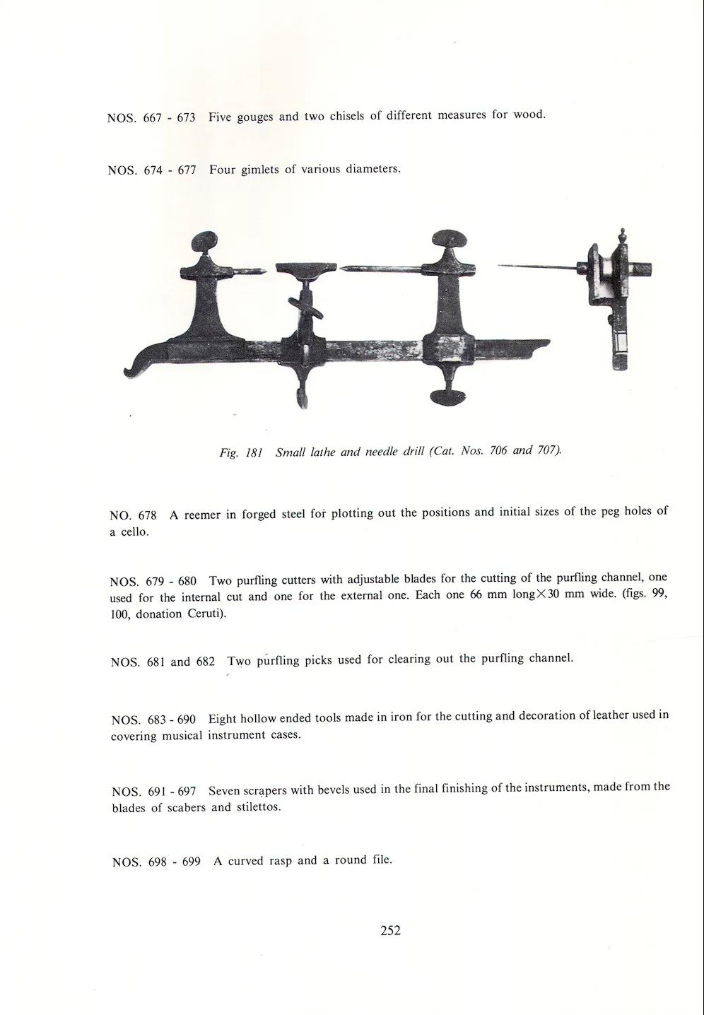4、18世纪铸铁袖珍车床。车床保存完好,与克雷莫纳 Stradivari 小提琴博物馆收藏的车床一模一样,也与 Sacconi 所著 《 The Secrets of Stradivari 》 第252页中提到的车床为同款。目前已知的同款车床收藏除克雷莫纳与台南奇美之外只有AC米兰中文官网。
