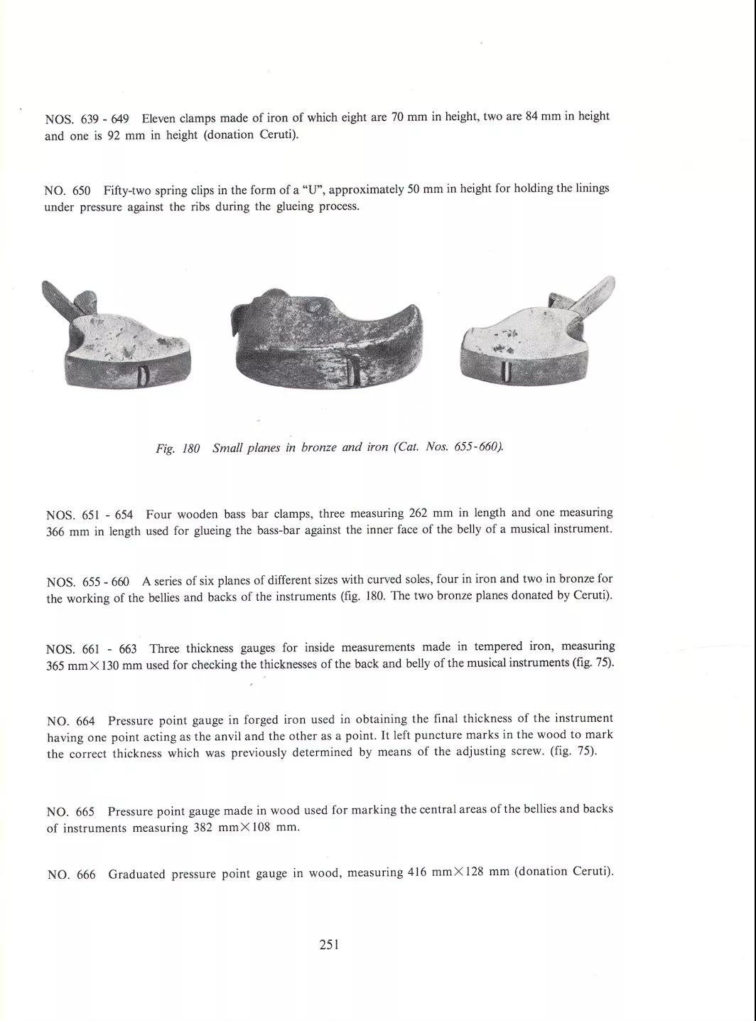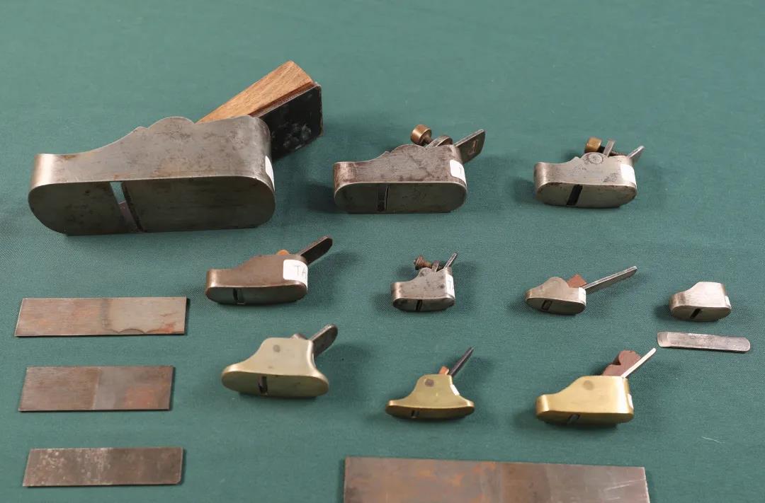 9、5个18世纪早期制作的用于小提琴、中提琴和大提琴琴板弧度制作的拇指刨。通常在制作琴板弧度时,最先使用的是铲刀来进行初步制作,接下来就要使用拇指刨进行二部制作,它的刨体、刨底以及刨刃与刨底的夹角直接影响到弧度制作的品质。另外5个18世纪早期,铜制或铁制的琴板弧度拇指刨,与 Sacconi 所著 《 The Secrets of Stradivari 》第 251页中提到的拇指刨极为相似,实属罕见。
