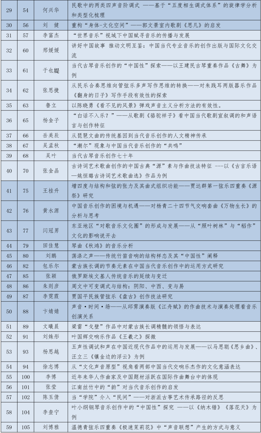 The “Contrasts and Convergence in Chinese Music: 3rd International Conference on Contemporary Studies of Chinese Music in a Global Perspective” has received a total of 222 conference applications from different countries and regions since the release of Announcement No. 1 on March 11, 2023, until the submission deadline on June 15, 2023. After a rigorous evaluation by the organizing committee's experts, a total of 125 Applications have been selected to attend the conference, which will be held at the Central Conservatory of Music in Beijing, China from October 20 to 23, 2023. The list of participants as follows.
