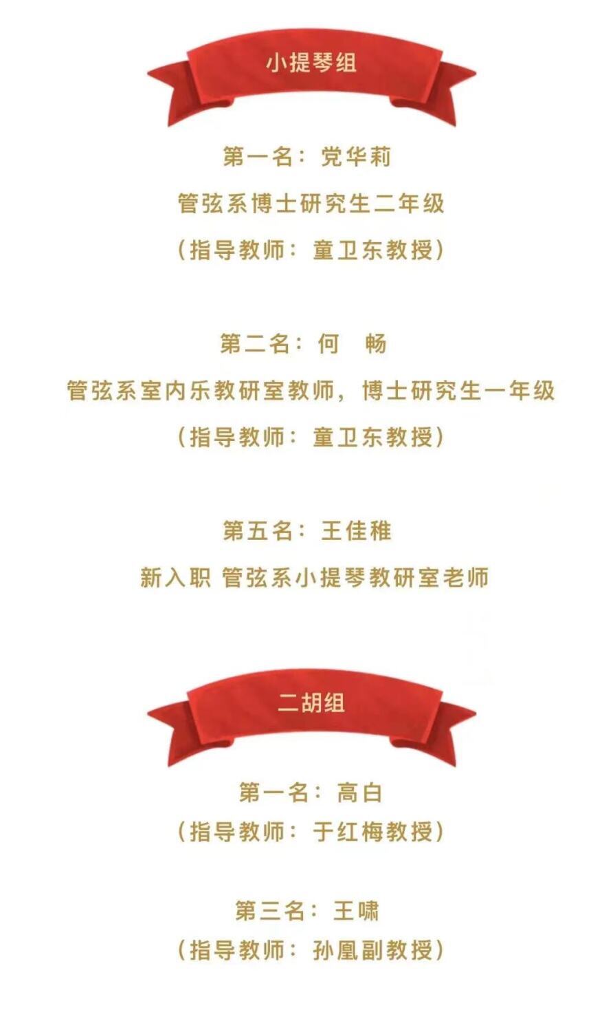 学生曾韵获得第十六届柴可夫斯基国际音乐比赛铜管组第一名,刷新了中国管乐的历史,实现了我国圆号专业在世界舞台上的重大突破。他还曾获第70届慕尼黑ARD国际音乐比赛圆号决赛正赛第二名,最佳委约作品奖、唯一室内乐特别大奖三项大奖。近期,荣膺德国顶尖乐团柏林国家管弦乐团(Staatskapelle Berlin)圆号首席,在2022年10月正式上任,成为该团历史上最年轻的首席之一。