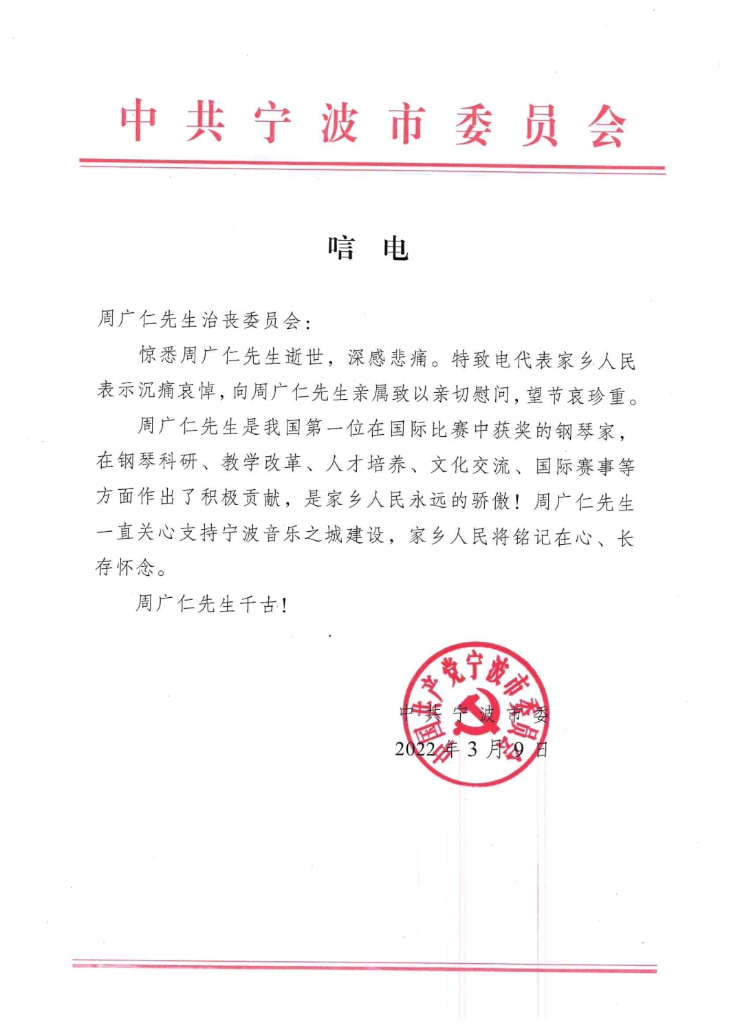 上一条:山西省钢琴学会致唁电 悼念周广仁先生