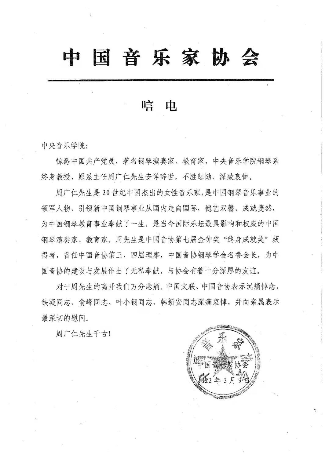 下一条:东北师范大学音乐学院致唁电 悼念周广仁先生