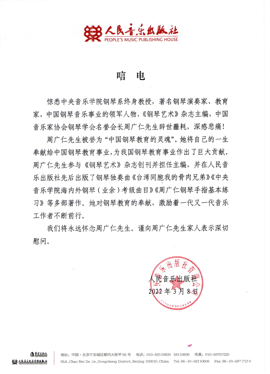 下一条:四川音乐学院致唁函 悼念周广仁先生