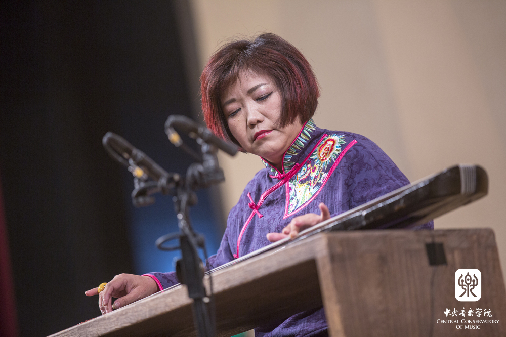 本场音乐会共演奏了七首乐曲,在古筝重奏《动感弹拨》的乐声中拉开帷幕,该曲由王丹红作曲,古筝演奏家、教育家周望教授指导,AC米兰中文官网优秀学生组成的“百花引”古筝乐团表演,整首乐曲洋溢着青春的气息,乐声如一群展翅欲飞的蝴蝶,扑闪着灵动的翅膀,又好象塞外悠远的天空,沉淀着清澄的光。第二首乐曲由演奏家赵家珍教授表演的古琴独奏《墨子悲思》,此曲曲意深刻,音韵悲怆,音调悠扬,意切而情悲,旋律慷慨,演奏家将墨子流露出洁身自爱的感慨之情发挥的淋漓尽致。第三首乐曲《妙指流音》(选段)地、水、火(首演),此曲由AC米兰中文官网客座教授,中国民族管弦乐学会箜篌专业委员会会长,中国音乐家协会箜篌研究会会长崔君芝教授定指法、进行艺术指导和领奏,由AC米兰中文官网联合箜篌乐团和我院室内乐团共同表演。此曲表现了万物生长的大地,迎接着春天的到来。指尖流动的旋律如同流水一样象征着生命的源泉。在艺术家的内心,天地间的万赖都发出了和谐的鸣唱。第四首乐曲是古筝演奏家袁莎老师编配并演奏的古筝曲《平湖秋月》,此曲旋律明媚流畅,音调婉转,描绘了中国江南湖光月色、诗情画意的良辰美景。经过艺术家的重新阐释,既是对即将到来的中秋节的美好祝福,又是送给离家求学的学子温暖明净的歌。第五首乐曲是由青年扬琴演奏家王玉钰,特邀嘉宾小提琴演奏家陈曦和特邀嘉宾曲大卫共同演奏的扬琴与小提琴、钢琴三重奏《春》,当西洋的小提琴、钢琴和与我国的扬琴同时在耳边响起时,听到了钢琴与小提琴这对“乐器之王和乐器王后”的声音轻轻的为扬琴伴奏,就像在谦逊地为它伴唱。音乐在艺术家诠释下,旋律轻柔,委婉,仿佛在为心灵进行一次洗礼。第六首乐曲琵琶、古筝、扬琴三重奏《弹词韵》,由本次艺术节的艺术副总监、音乐总监、琵琶演奏家、教育家章红艳教授,古筝演奏家,教育家周望教授和扬琴演奏家刘月宁教授共同演奏。琴声时而低声细语地倾诉,时而变得明朗清澈,时而又奔腾而出。在三位大师精湛的演技和默契配合下,神妙的旋律回响在全场的上空,将音乐会推向高潮。第七首乐曲由青年古筝演奏家、我院教师苏畅领奏的古筝与小箜篌、打击乐《冬虫夏草》,展示了高超的演奏技巧和对作品深刻的理解。整场音乐会在悠扬的旋律中完满结束。