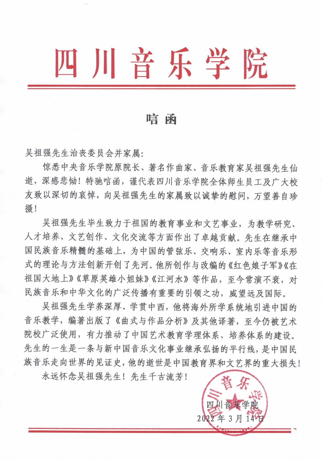 下一条:人民音乐出版社致唁电 悼念吴祖强教授