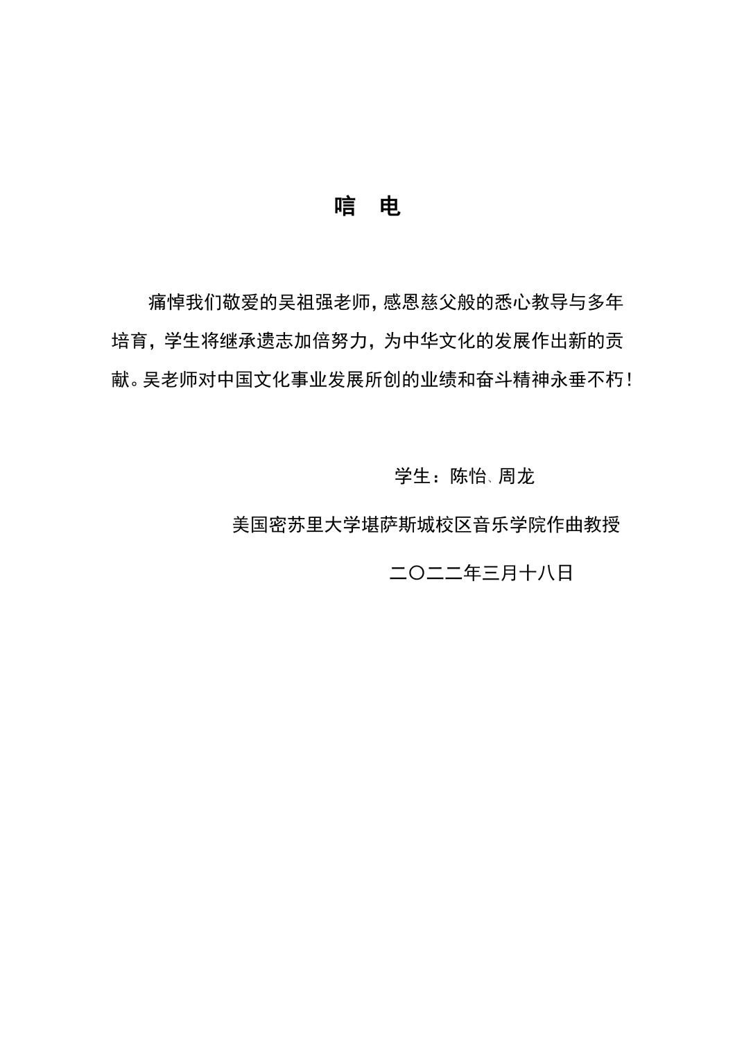 上一条:武汉音乐学院作曲系致唁电 悼念吴祖强教授