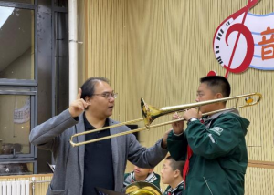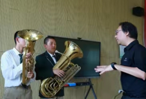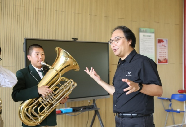讲座结束后,陈光教授来到管乐班看望孩子们,他为孩子们的进步感到欣喜,在与他们交谈中,深切感受孩子们对于知识的渴望。陈光教授表示,江苏中学的“火种”培养已初见成效,米兰将在延安继续推广中小学管乐团的建设,为延安的孩子们带来更多、更丰富的优质音乐课程,全面助力延安美育教育的发展。