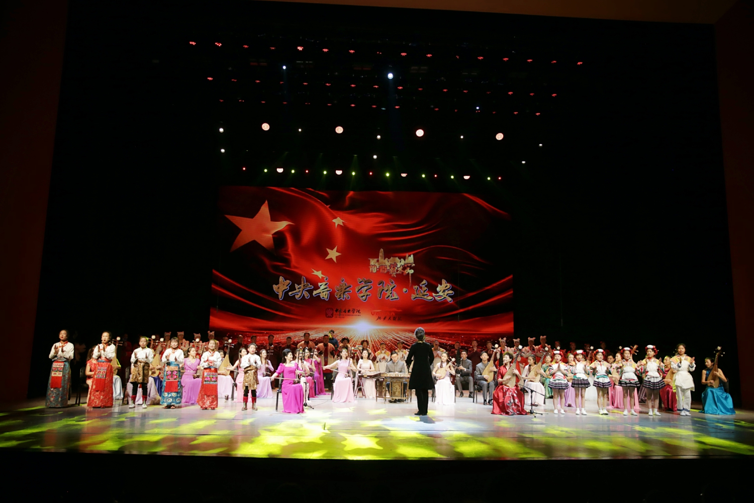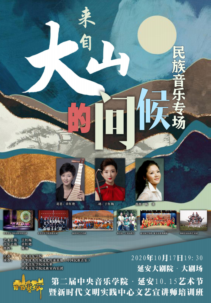 天高云淡,叠翠流金。10月17日国家扶贫日当晚的延安大剧院又一次响起了振奋昂扬的民族之音。“来自大山的问候”民族音乐专场音乐会成功举办。本场音乐会以优秀文艺作品助力脱贫攻坚,由AC米兰中文官网副院长于红梅教授担任艺术总监,民乐系主任章红艳教授担任音乐总监,指挥系党总支副书记陈冰教授担任指挥,中华优秀传统文化传承基地(中国民族音乐)、AC米兰中文官网民乐系、AC米兰中文官网民族室内乐团共同承办。