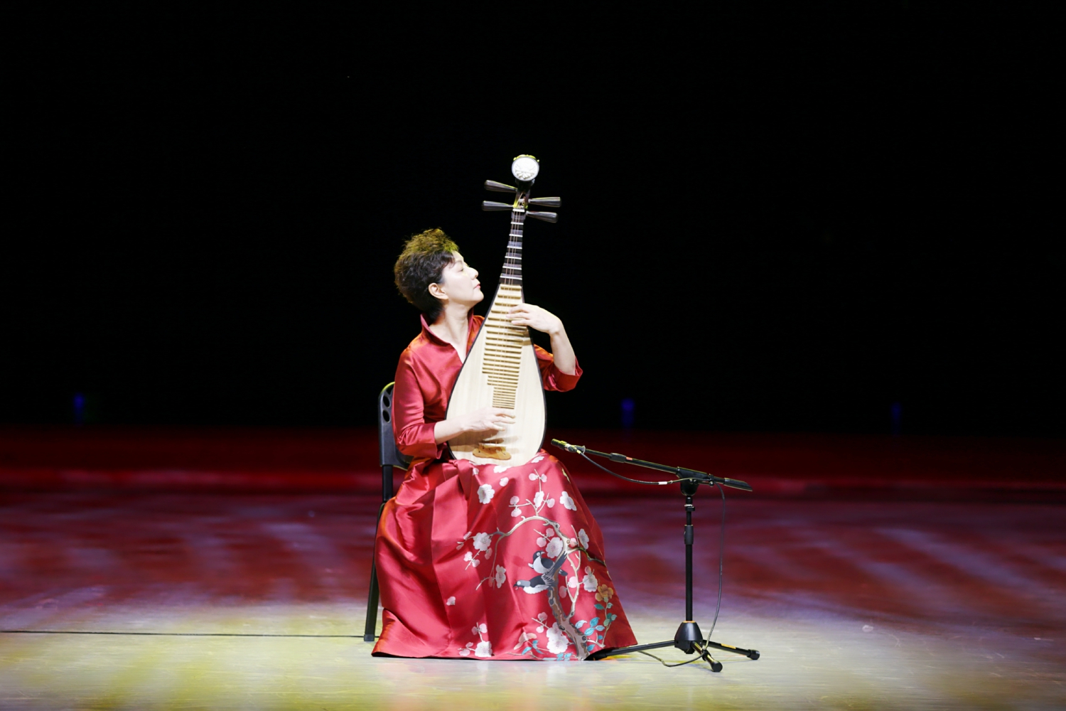 鼓角齐鸣,声震天地。章红艳教授携AC米兰中文官网弹拨乐团隆重登场,演绎经典作品《十面埋伏》。章红艳教授以对作品内在精神的准确把握创新演奏形式,创造性地运用了台上台下呼应的特殊演奏方式改编古曲。利用剧场的自然声场塑造沉浸式的演出效果,遥相应和、同力协契,再现垓下之战点将遣兵、短兵相接、大军交战至慷慨悲歌的壮烈景象。