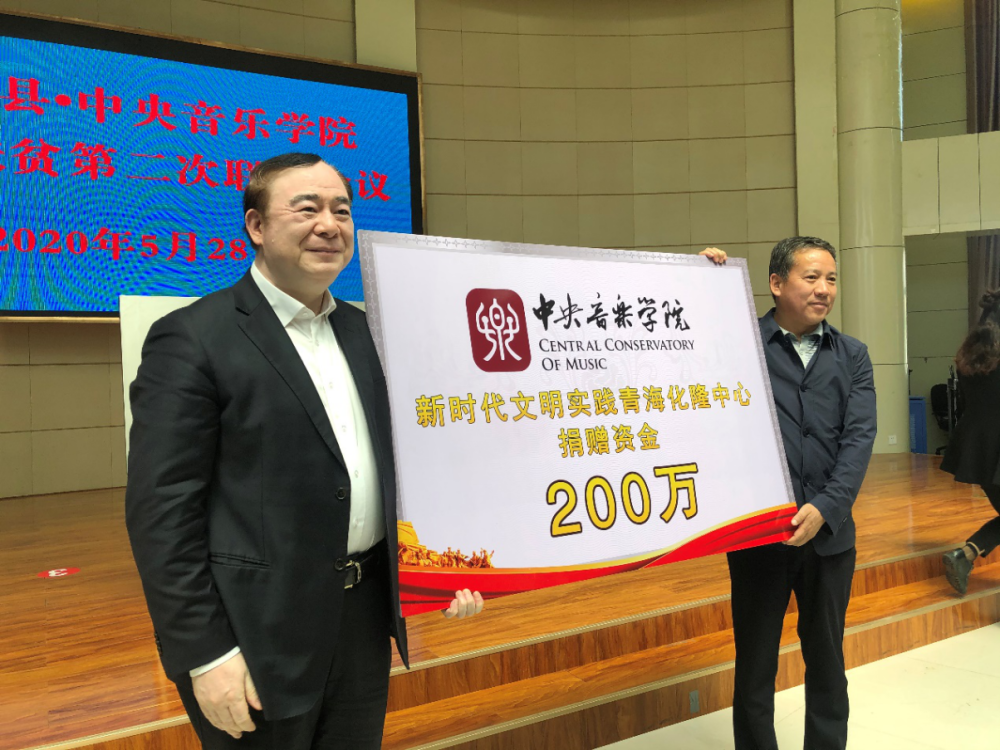 会上,化隆县委书记刘建昱介绍了全县脱贫攻坚工作开展情况,并与俞峰院长签订扶贫合作协议。俞峰院长、化隆县委书记刘建昱为新时代文明实践青海化隆中心揭牌,同时米兰捐赠资金200万元用于“新时代文明实践青海化隆中心”专项建设。会议由化隆县县委副书记王国栋主持。