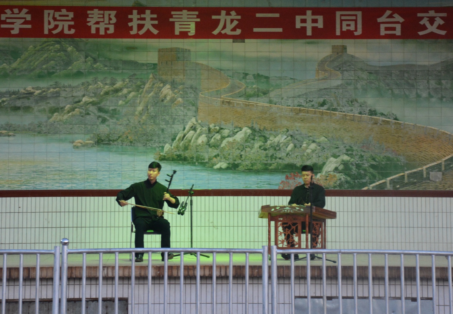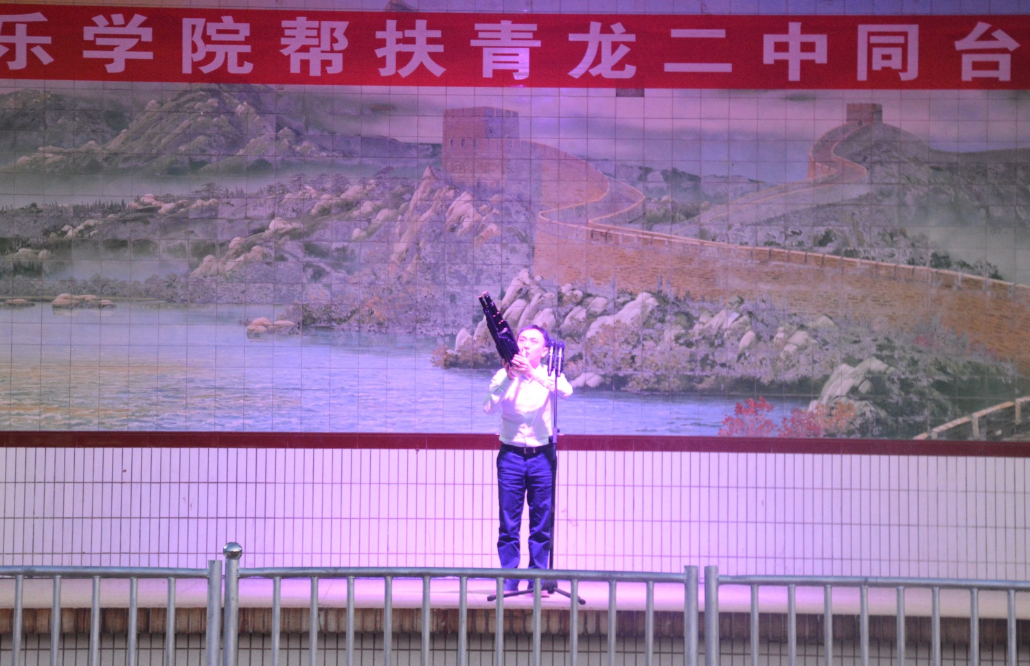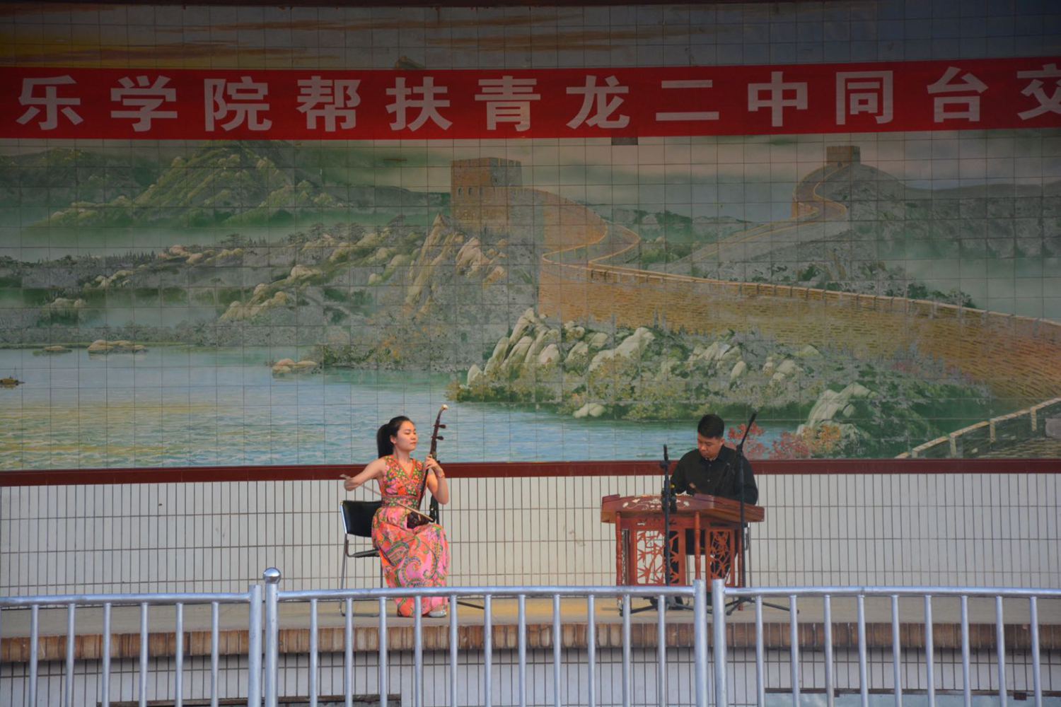 这次赴青龙县的行程,虽然短暂,但让我感触颇深。青龙县领导对艺术兴教、文化体质的重视,青龙二中从校领导到老师们对艺术帮扶的迫切和热情打动了我,领导们为孩子们谋将来、为人民谋幸福,教室们甘于奉献的坚守之心,都深深地感染了我。专家指导课环节,凸现了我院老师们的专业高度和精神,尤其是红梅院长在给学习二胡的同学们授课的过程中,从最基本的音准、节奏要求讲到如何训练的方法,从音乐的魅力讲到对美的追求,还通过亲身示范全方位地给在场的所有人都上了一堂精彩的美育课。原本下午的演出交流因座谈会推迟到了傍晚,但操场上的学生们热情不减,反响热烈,让我深深地感受到艺术教育、音乐教育能够为祖国的青少年的内心、思想建设带来巨大的影响,更感到作为高等教育工作者肩头的责任和使命。近年来,由教育部主导,我院积极响应的帮扶活动频率很高,这体现了我院对国家扶贫攻坚最后战役的有力支持,作为一名党员,又是学院中层干部,我为能够参加这样的活动感到十分荣幸,如果能有机会更深入地为帮扶项目出一份力,一定义不容辞。