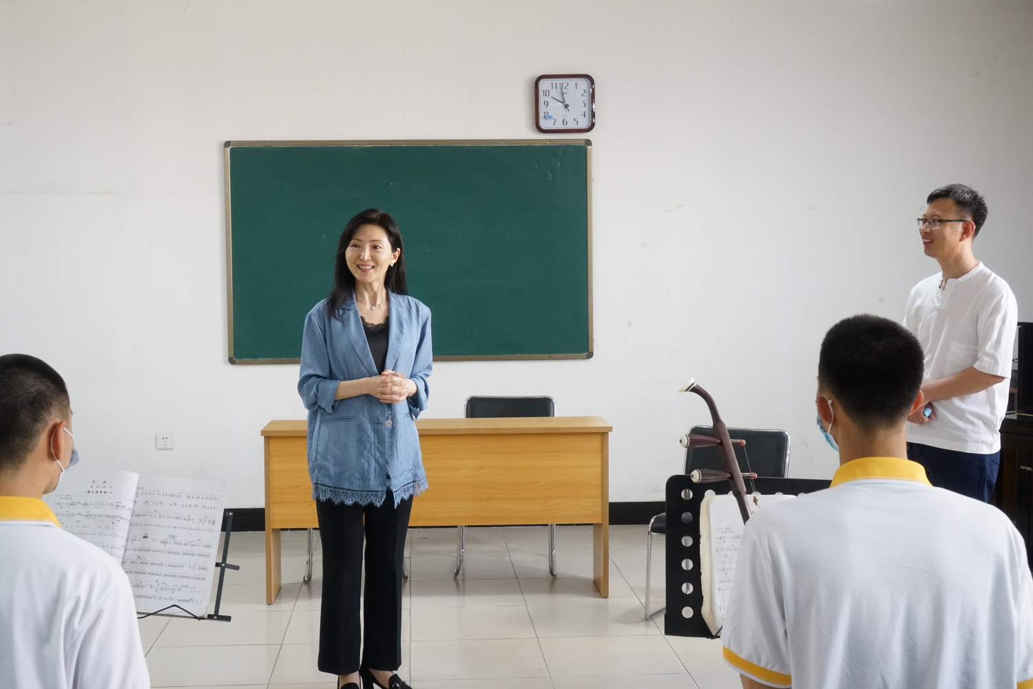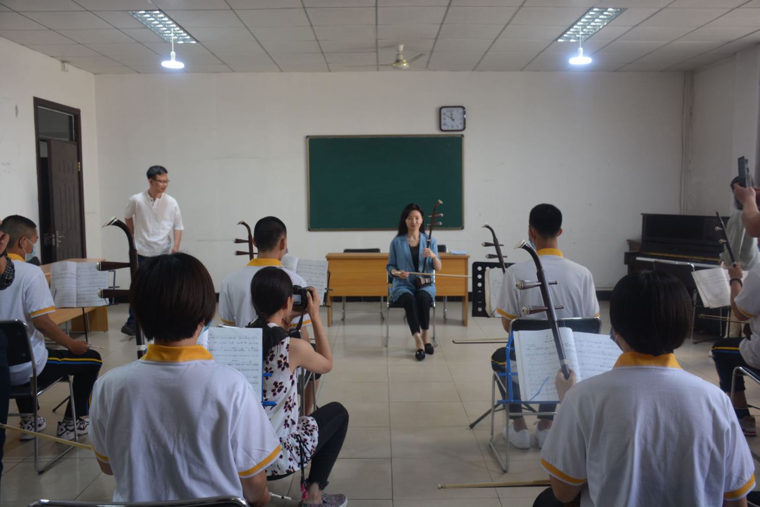 2020年6月2日下午,为了解当地音乐教育现状及师生的切实需求,于红梅副院长一行来到青龙满族自治县第二中学(以下简称青龙二中)展开调研,首先观看了青龙二中精心安排的专业教学成果展示,并由米兰各专业教师分别走访不同专业教室,与学生们在专业上进行了深入交流,并对提出的问题进行了细致解答与悉心指导。当于红梅副院长走进二胡专业教室时,受到了在场师生的热烈欢迎。同学们亲眼见到一直以来的“偶像”老师,按捺不住激动的心情纷纷举手请于红梅副院长为大家现场演奏一曲。于红梅副院长欣然答应,接过一位同学手上的二胡,倾情演奏了他们正在学习的《豫北叙事曲》,令在场师生拍手叫绝,掌声与赞叹经久不息。