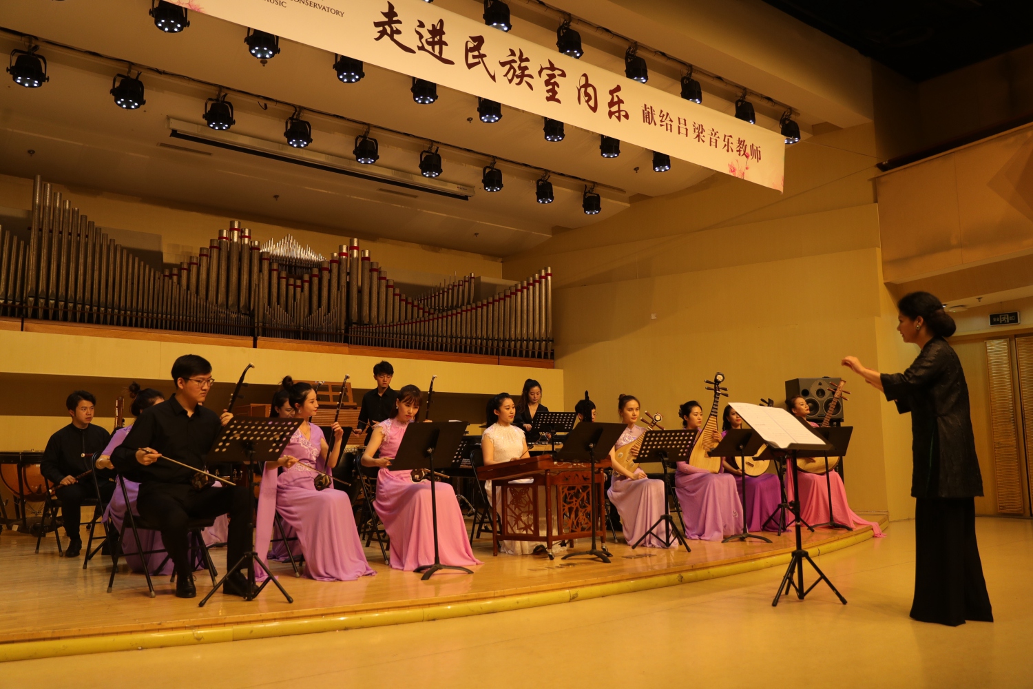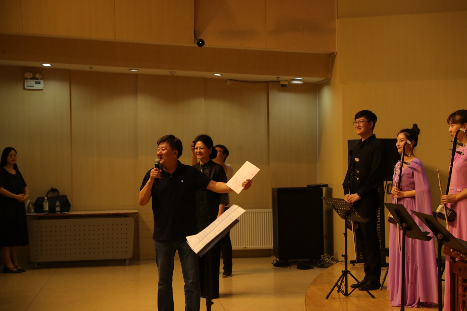 7月12日晚7点,由民族室内乐团为吕梁中小学音乐教师精心准备的“走进民族室内乐——献给吕梁音乐教师”音乐会在教学楼201拉开帷幕,陈冰教授担任指挥。