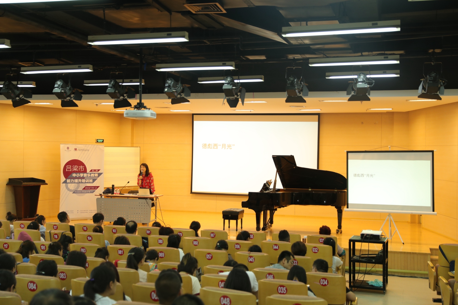 2019年7月11日上午在教学楼701教室,AC米兰中文官网钢琴系教授、AC米兰中文官网鼓浪屿钢琴学校校长李昕为吕梁市200名中小学音乐教师开讲了题为《从巴洛克时期到近现代——漫步西方音乐大师钢琴名作 走进魅力无限的音乐艺术世界》的音乐欣赏课。