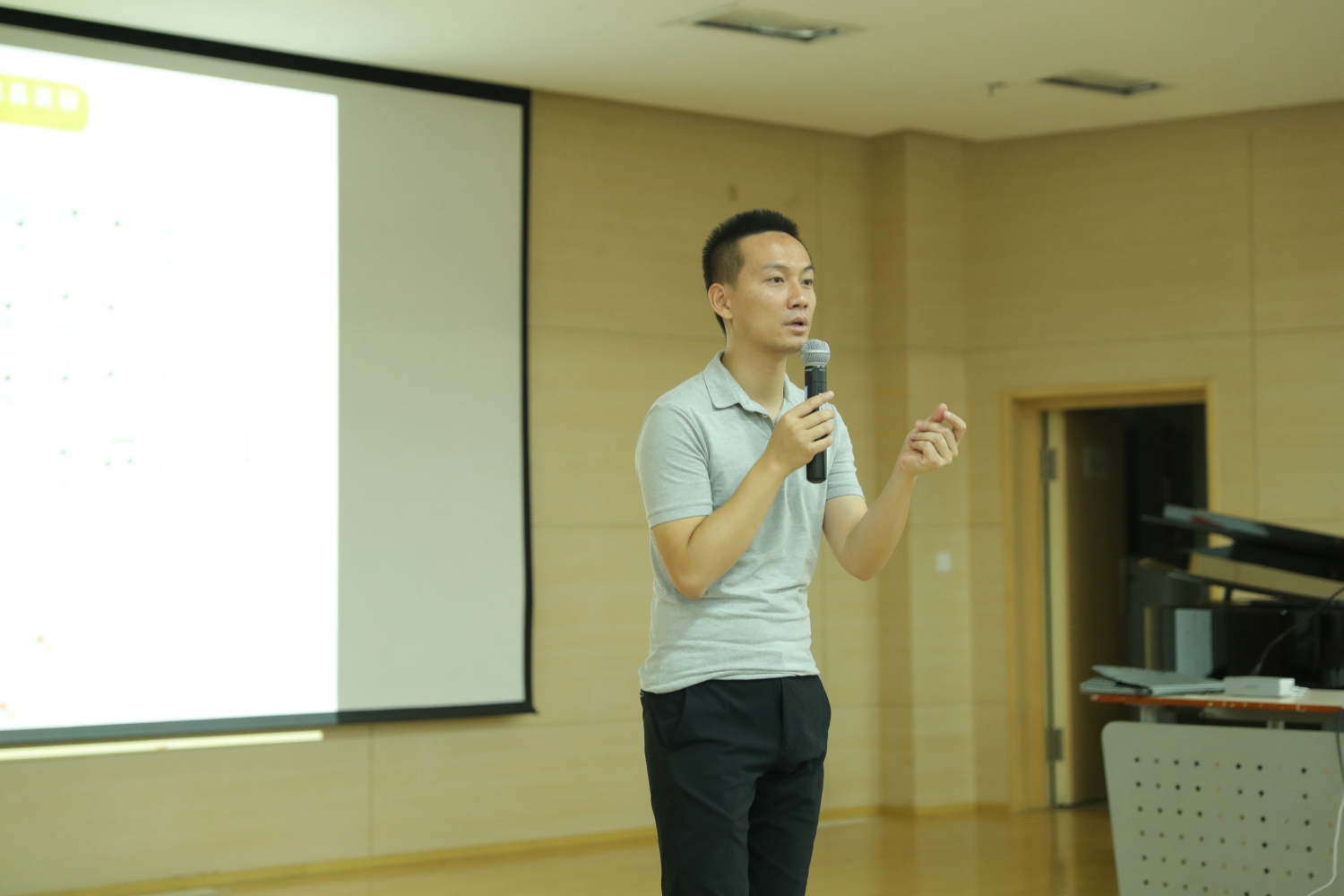 2019年7月9日上午在教学楼701教室,米兰音乐教育学院刘凯老师为200位吕梁音乐教师带来了“体态律动在中小学歌唱教学和音乐欣赏中的应用”讲座。他将讲授内容分为小学与中学音乐常态课教学两个部分,并结合了世界三大音乐教育体系中最早也是最有影响力的瑞士雅克达尔克罗兹体态律动学理论,对体态律动如何渗透到中小学常态音乐课的歌唱教学、音乐欣赏和歌唱游戏活动中进行系统深入地分析。在讲座上,他强调,显化音乐韵律感的歌唱是最为重要的体态律动活动,对于歌唱的联觉体验可以从山西地区深厚的歌、舞、器乐为一体的音乐传统中借鉴经验;在音乐欣赏方面,他在剖析中国当代音乐教育哲学观思潮的历史背景下,指出现行的音乐欣赏课经常是一种被动的欣赏活动,可以由引入体态律动进而调动学生的积极听觉和视动觉体验来丰富和完善;歌唱游戏活动是为了让小学生通过结合歌唱的体态律动活动对音乐要素进行体验、认知和创编。随后,他结合教育部制订的中小学音乐音乐课本中大量课例,围绕正拍乐句、弱起乐句、乐句重音、节拍重音、旋律重音、节奏型、曲式结构、步态与韵律等音乐律动元素,结合歌唱、律动和指挥等实践活动,带领吕梁的音乐教师们进行课堂实操体验,强调发展分析音乐作品,并迅速找到它们在韵律上的独特性,并合理运用到常态课教学当中的能力。在内容高度精炼的3小时讲座中,刘凯老师与在座200位吕梁一线中小学音乐教师们积极互动,体感音乐的生命,现场气氛十分热烈。