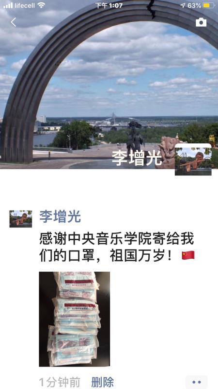 近日,米兰与乌克兰国立柴可夫斯基音乐学院共建的“音乐孔子课堂”的中方教师和志愿者教师们,收到了由米兰邮寄、历时多日到达的防疫用品。乌克兰是欧洲较早执行严格隔离措施的国家,疫情期间国际货运的速度大幅减缓,在校领导的直接关怀、院长办公室和校园建设与管理处的积极支持和协助下,米兰音乐孔子学院办公室及中外音乐文化交流与体验基地克服重重困难,最终将宝贵的防疫用品送到了外派教师与志愿者教师的手中,让他们感受到来自祖国的温暖与力量。