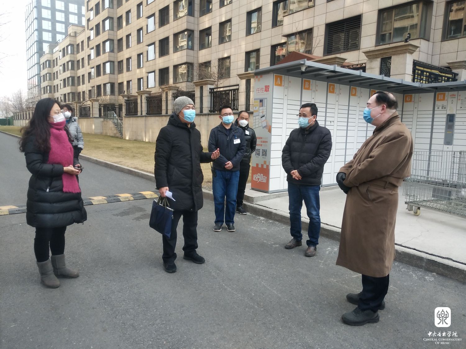 俞峰院长、院长办公室主任王歆、保卫部处长王京超、副处长贺战宏,校园建设管理处处长赵海、副处长赵运生等陪同刘刚副组长一行实地检查了校内家属住宿区的防控、教学区的管理、隔离观察点的建设以及东校区学生公寓和食堂的管控,认真了解了米兰疫情防控的具体措施和落实情况,并询问了学校的物质储备情况及目前存在的困难,还特别去后勤员工宿舍查看了住宿安排的安全情况。俞峰院长向刘刚副组长详细介绍了自疫情发生以来,米兰迅速按照教育部和北京市委教育工委的要求所做的各项工作部署,尤其是严格落实市委教育工委的“六个一律”、成立湖北师生专项工作组、细化排查校内保安、物业等后勤人员的管理和防控工作,同时也介绍了学校在第一时间为湖北地区师生寄去口罩,校领导视频连线湖北地区师生送去温暖问候,为奋战一线替我们守护家园的后勤工作者发放慰问品和补贴,关心留校学生等人文央音的做法以及为3月2日即将开始的全校在线教学做好了充分的准备。
