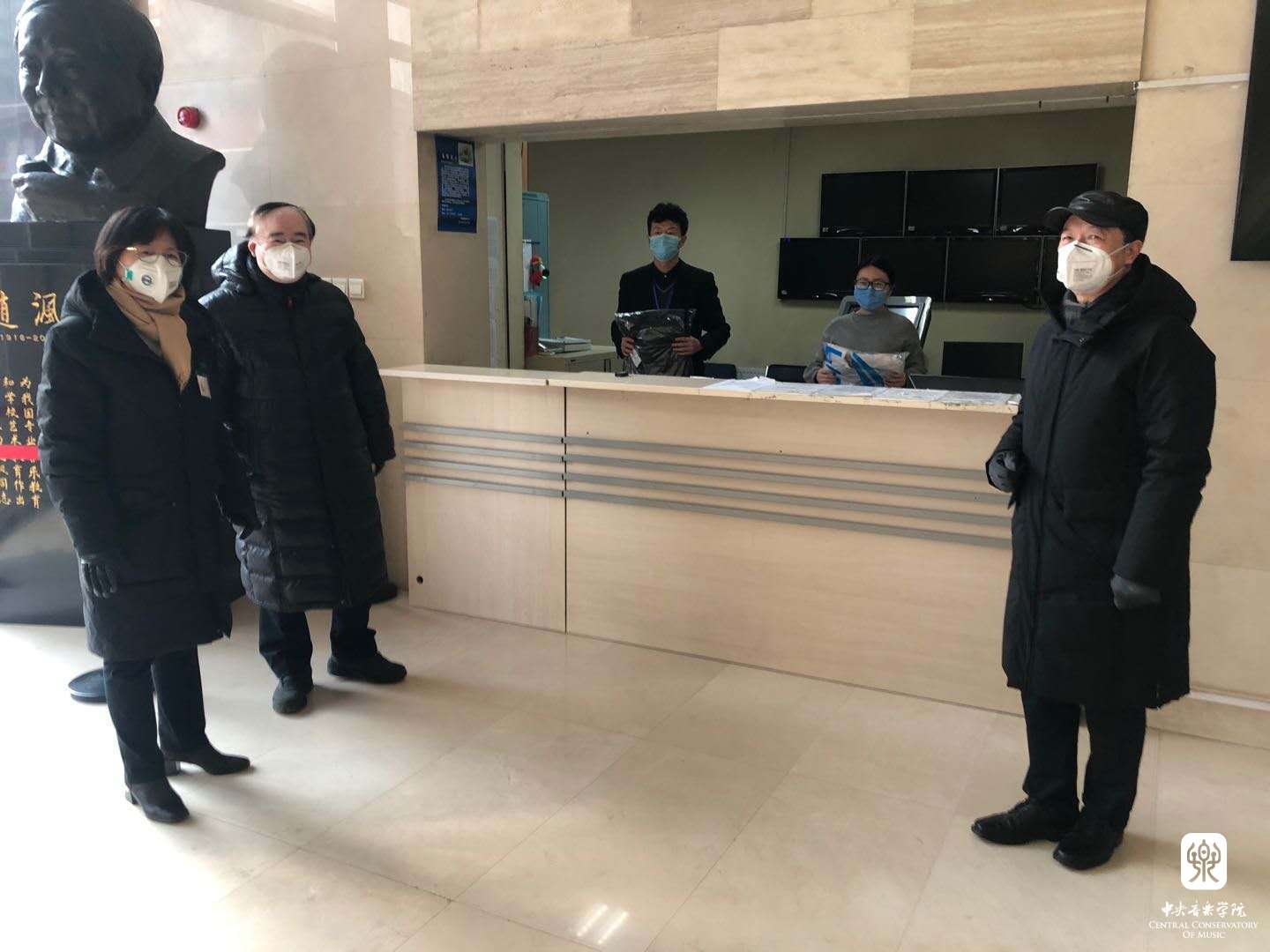 2月11日下午,党委书记赵旻、院长俞峰深入一线检查疫情防控工作,看望慰问坚守在疫情防控一线的干部、职工和工作人员。组织部、院长办公室、宣传部、教务处、保卫部、校园建设与管理处负责同志一起慰问。