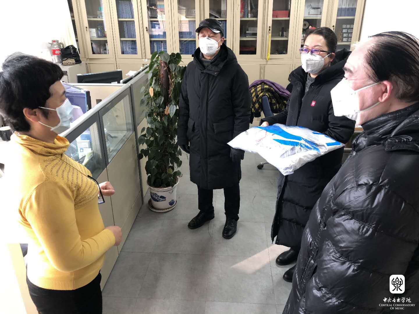 赵旻书记和俞峰院长先后看望慰问了保安员、教务处、物业项目部、维修部、保洁部、学生公寓、食堂以及学生处的工作人员,详细询问了值班值守人员的具体情况,为大家发放了慰问品,鼓励他们继续保持昂扬斗志,坚守岗位,守好责任田,护好一校人,并叮嘱大家在全身心投入疫情防控工作的同时,要注重加强自我防护,确保自身安全,齐心协力,坚决打赢这场疫情防控阻击战。
