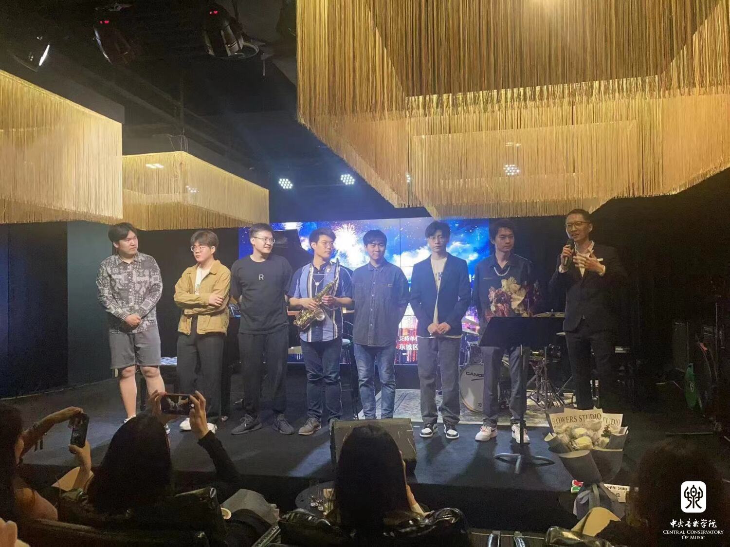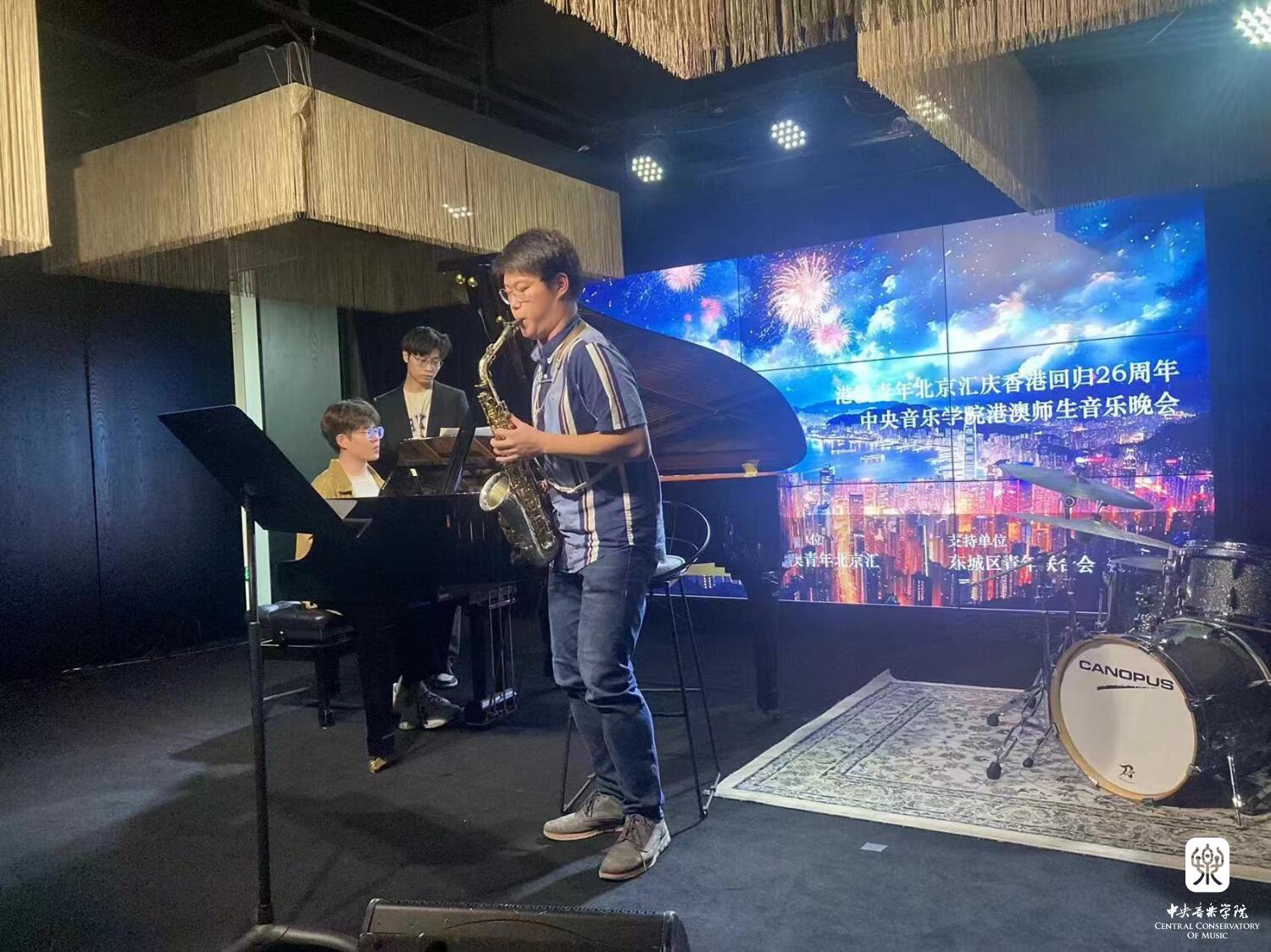 在观众进场、中场休息和观众退场的时段,打击乐专业的研究生燕嘉熠同学和作曲专业的研究生吴天戈同学为现场的观众献上了精彩的即兴演奏,为晚会增添了轻松愉悦的气氛。