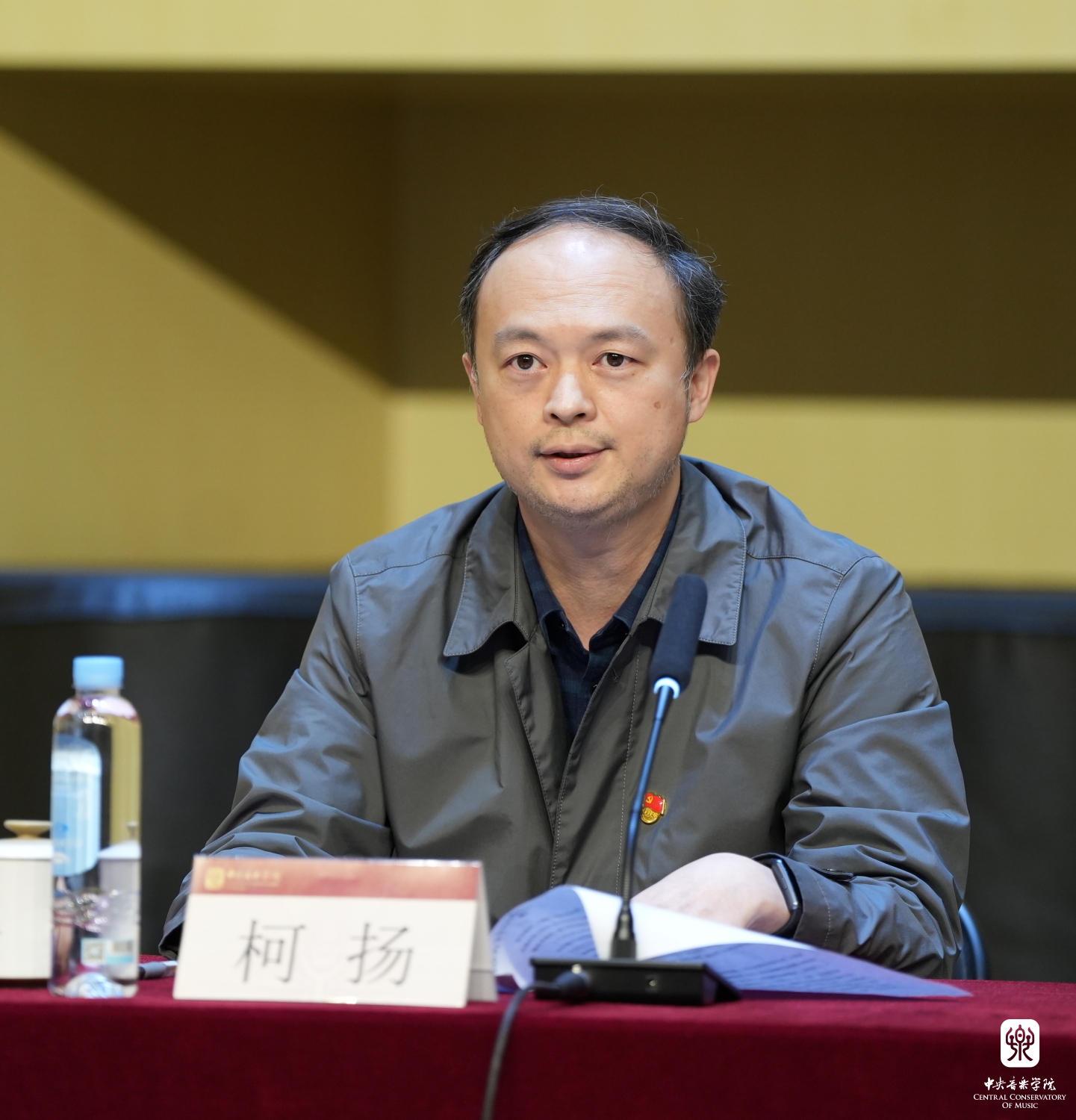 音乐学研究所所长贾国平从自身教学、研究工作出发,分享了近期赴山西吕梁支教和调研的经历,重点就美育、音乐普及教育的话题分享了自己的体会。他表示,美育事关未来的中国青年、人民的生活质量和文化水平,在全面推进中国式现代化的过程中,音乐普及教育应如何建设,这是学校需要思考的问题。他呼吁学校利用此次主题教育契机,继续发挥自身优势与经验,从实践、理论研究等方面探讨新时代的美育体系建设,做好音乐普及工作,更好地培育时代新人。