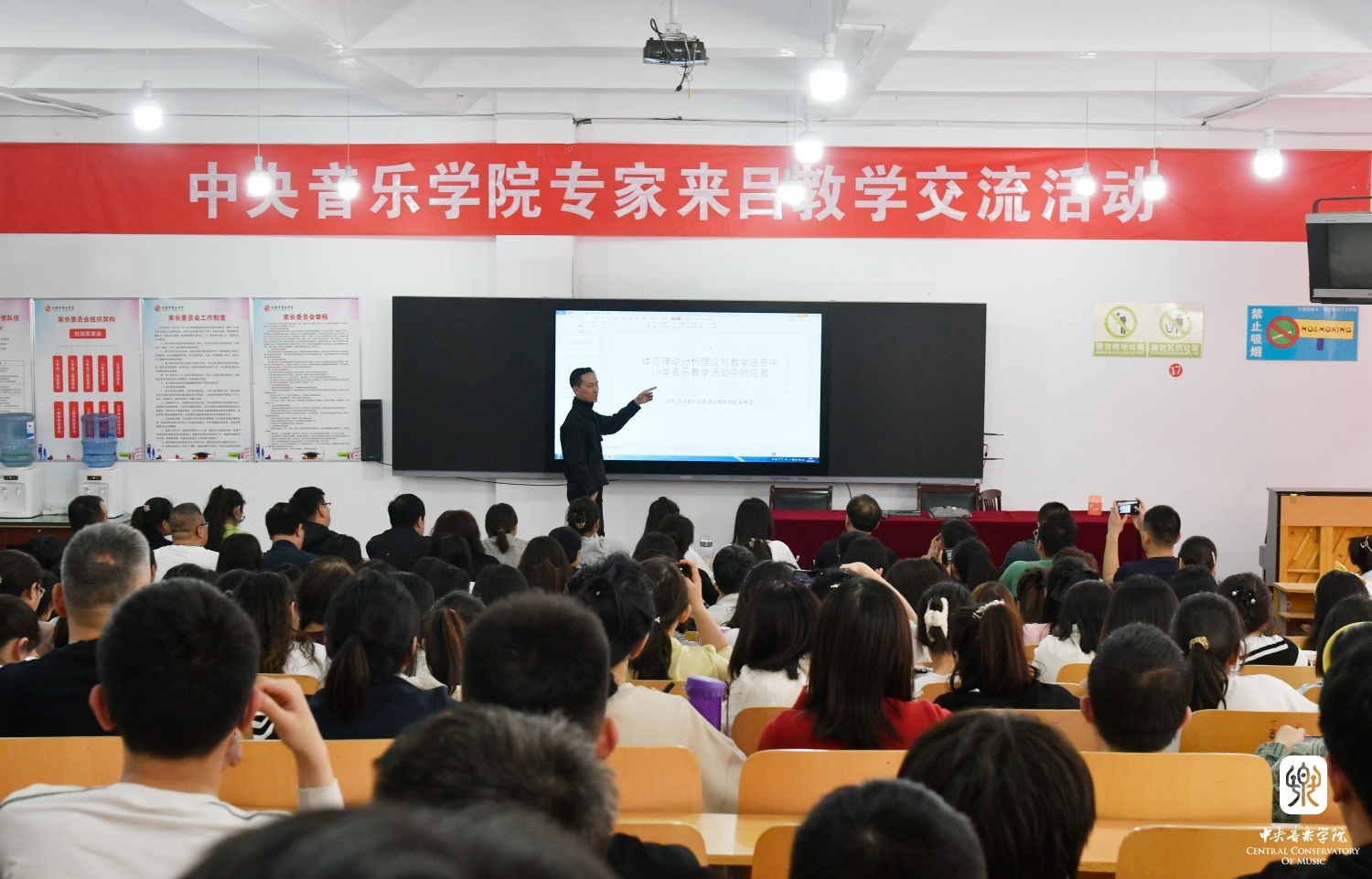 此次音乐教育学院的教师们还为吕梁市各区县一百余位一线音乐教师进行了三日的教师培训,张征老师对音乐与钢琴即兴的独特见解为老师们提供了课堂即兴活动的新思路;林松涛老师的音乐综合课拓宽了老师们对于音乐课形式的眼界;刘凯老师的体态律动课开辟了进行音乐课堂体验的新路径;贺晓乐老师的发声训练课从原理到训练的授课手法使发声训练更加科学。三天的培训为吕梁市的教师们打开了新的音乐教学之路,授课教师们用自己的力量助力一线音乐教育。