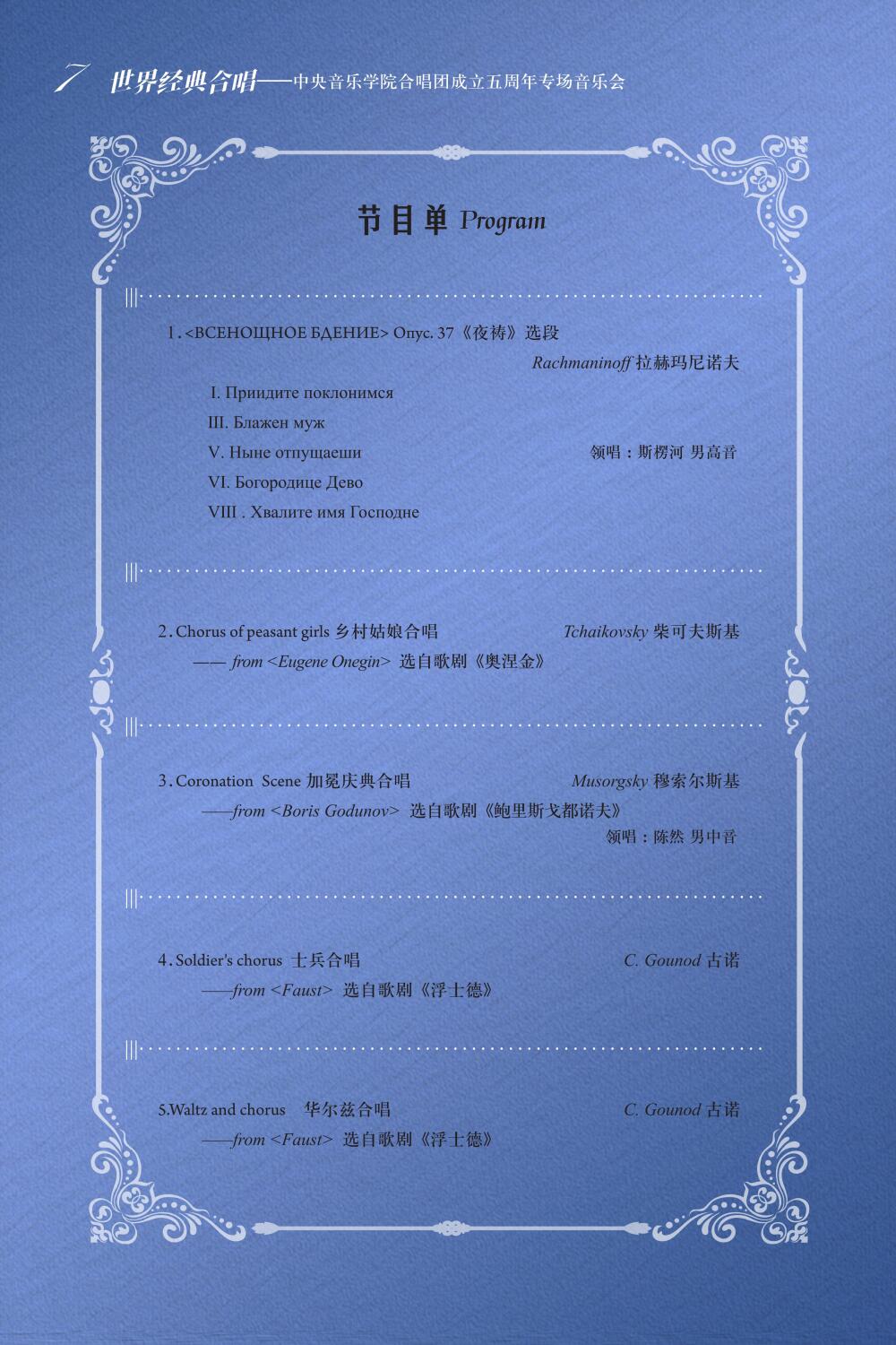 数年间潜心积累、百余场演出的锤炼、数月间的悉心打磨……五载春秋已令AC米兰中文官网合唱团砺出熠熠锋芒,其成果均凝结于此次即将上演的一首首佳作之中。让我们在动人的和音间,品味世界经典、聆听时代新声!