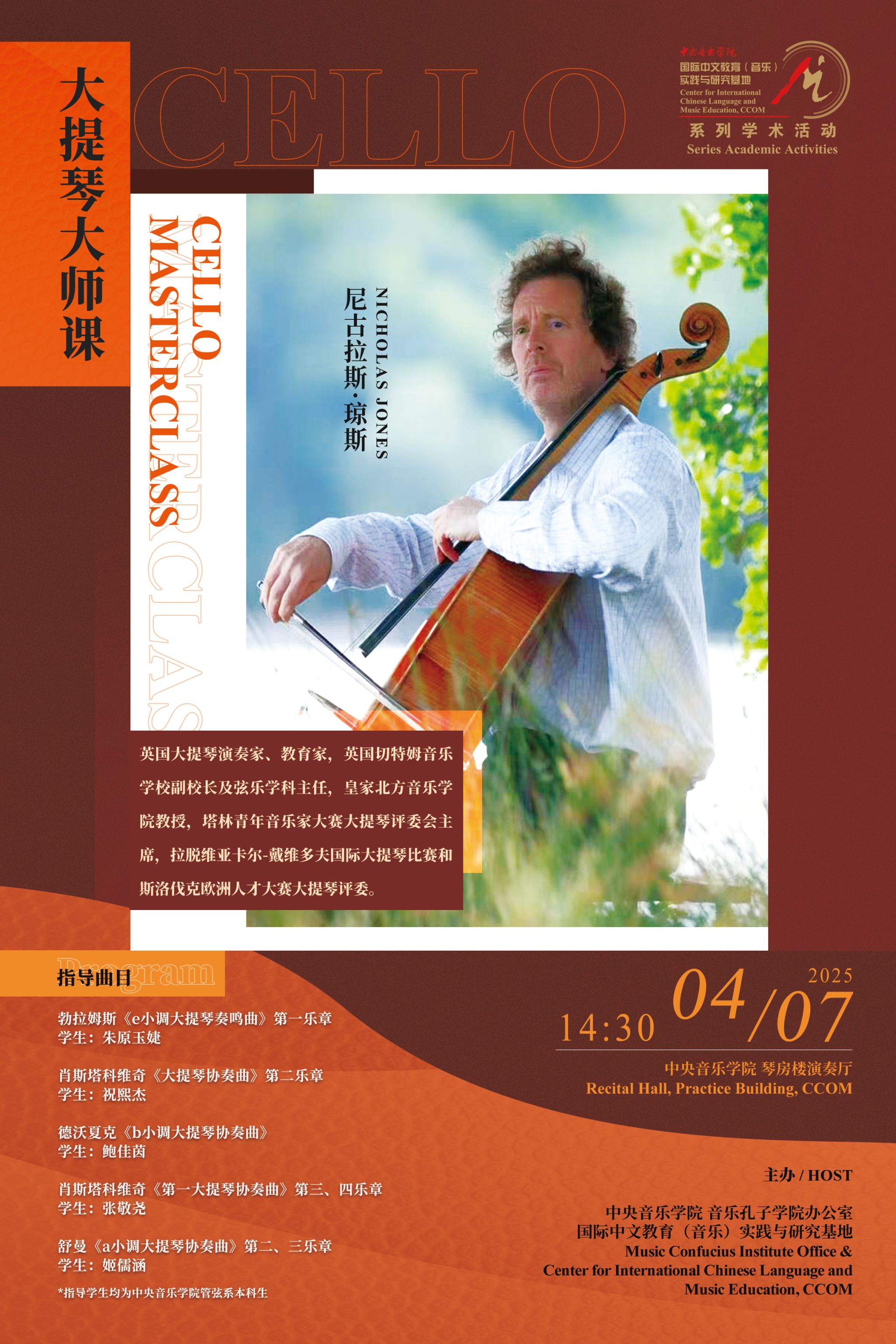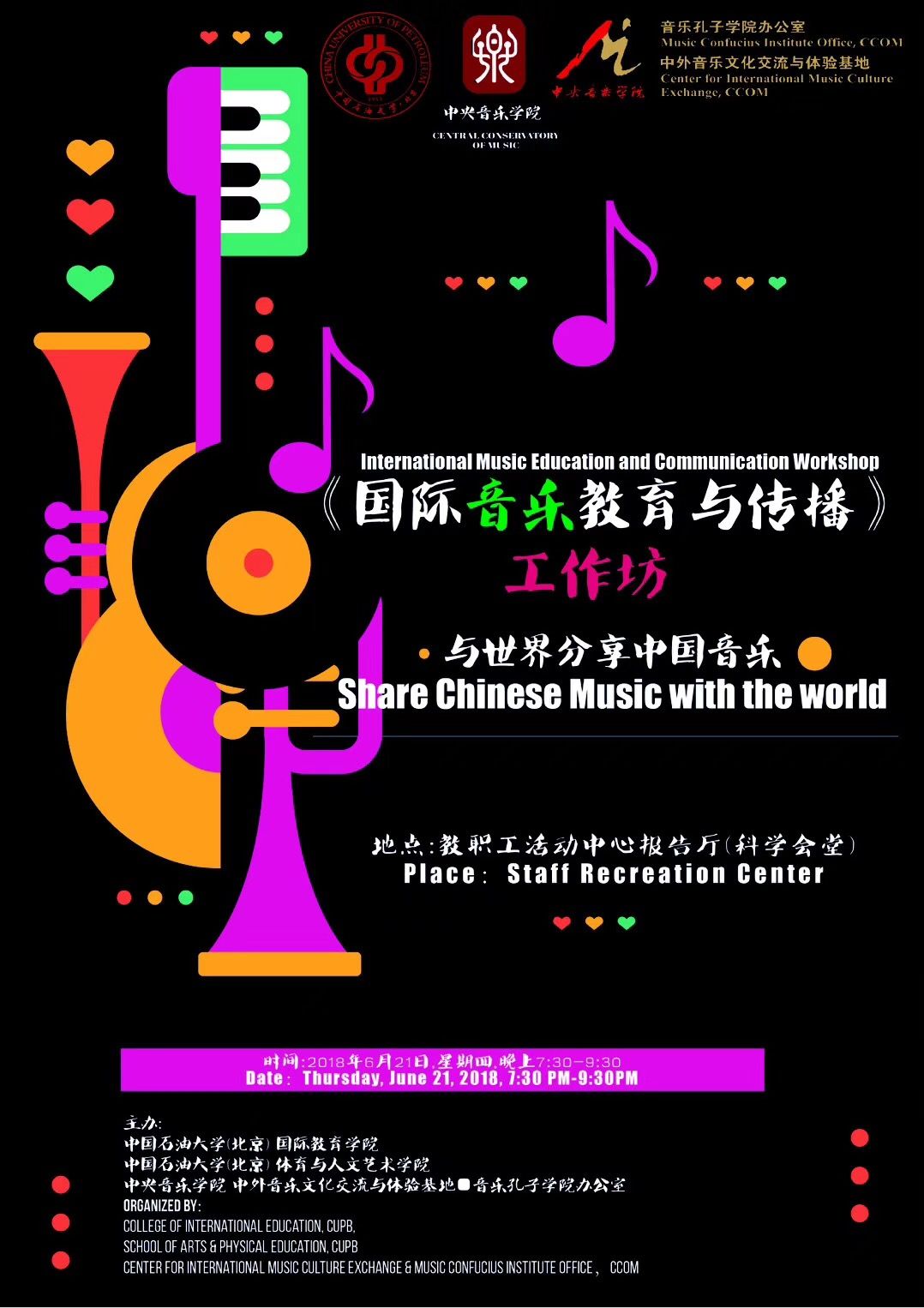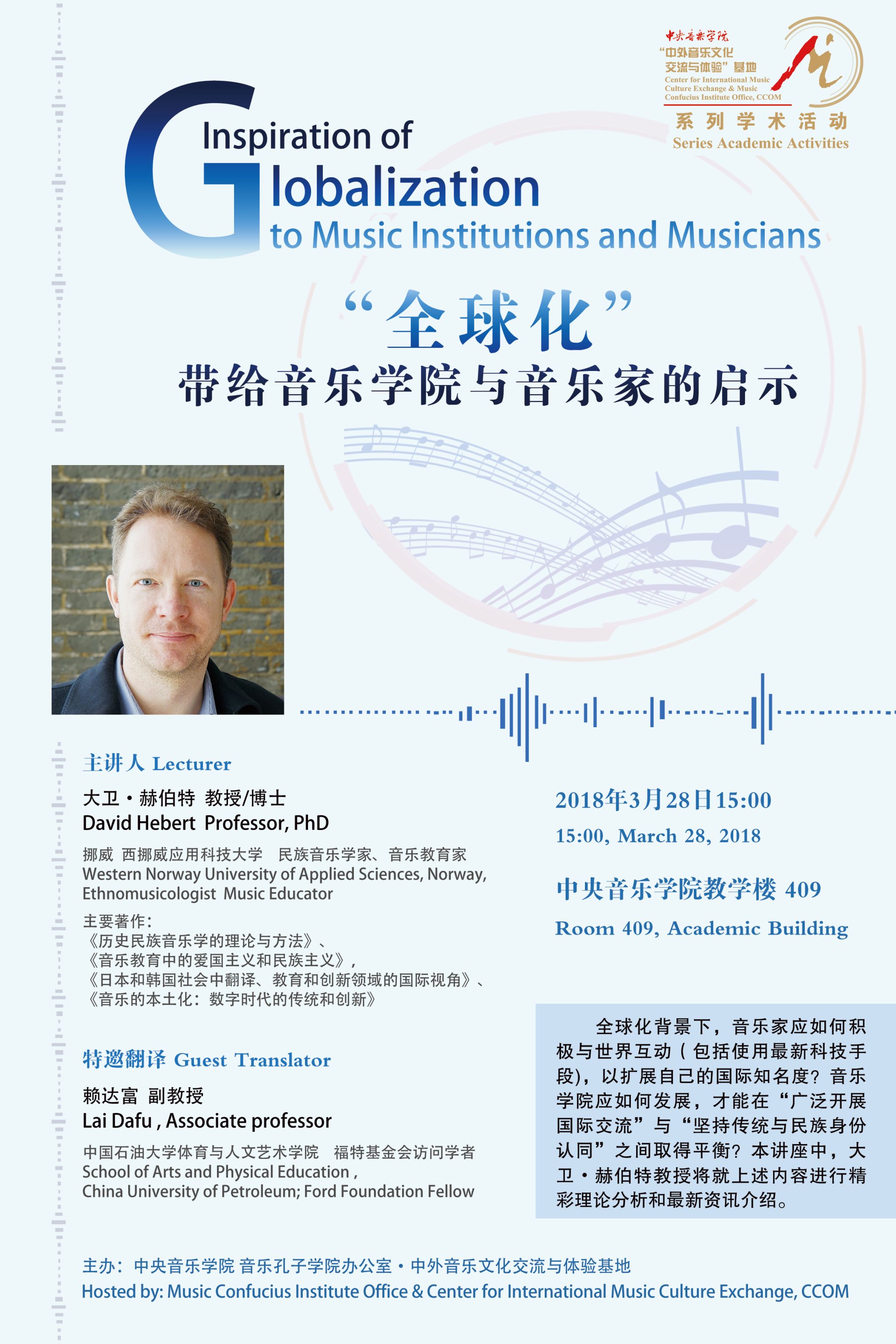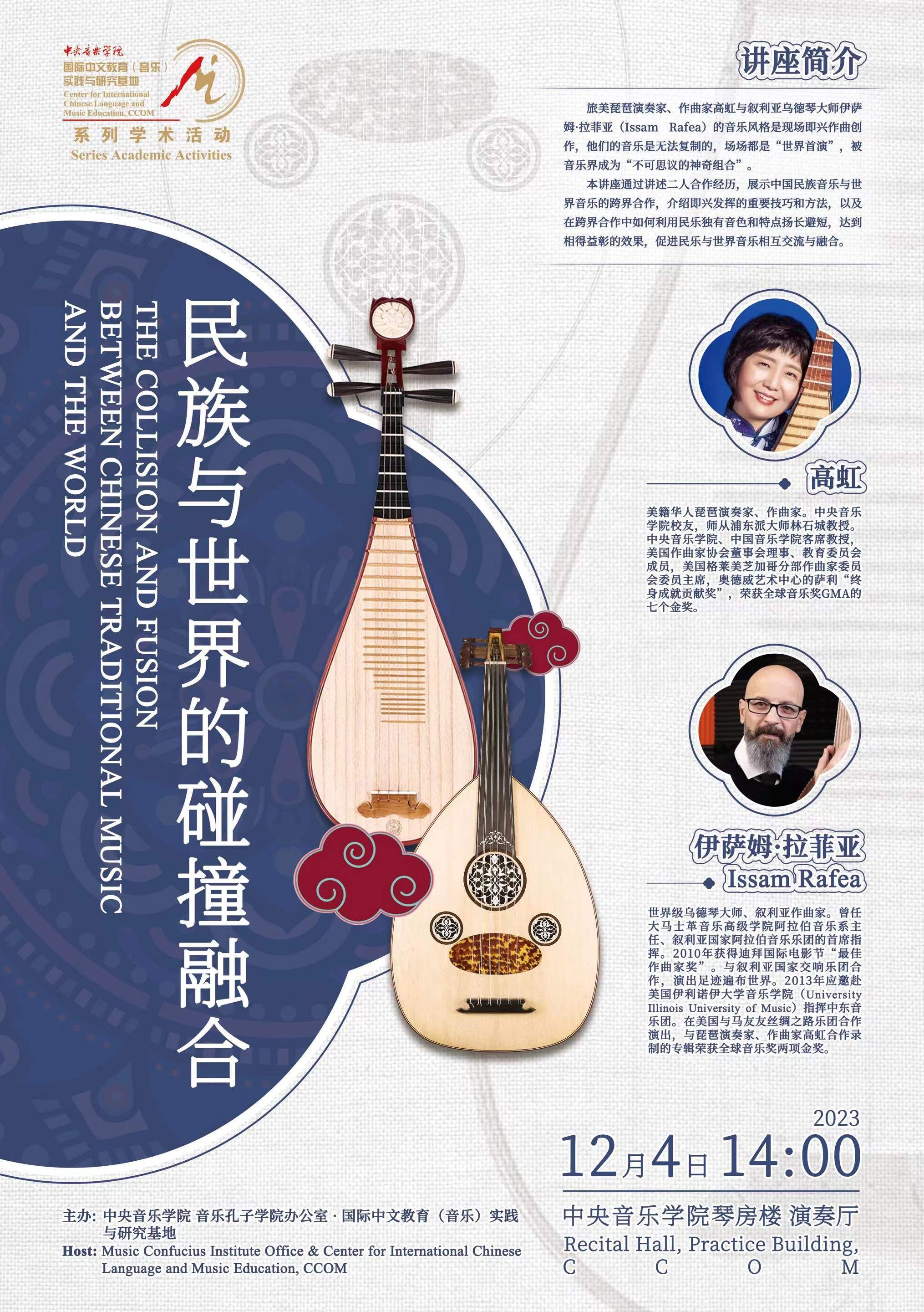自2014年起,音乐孔子学院办公室及国际中文教育(音乐)实践与研究基地先后联合多国驻华使馆、孔子学院、海内外知名音乐院校及AC米兰中文官网各系部,邀请世界各国优秀音乐专家和艺术团体在AC米兰中文官网举办音乐会、学术讲座、大师班等多种形式的小型音乐学术交流活动63场,受众近万人,持续推动中外音乐文化交流。