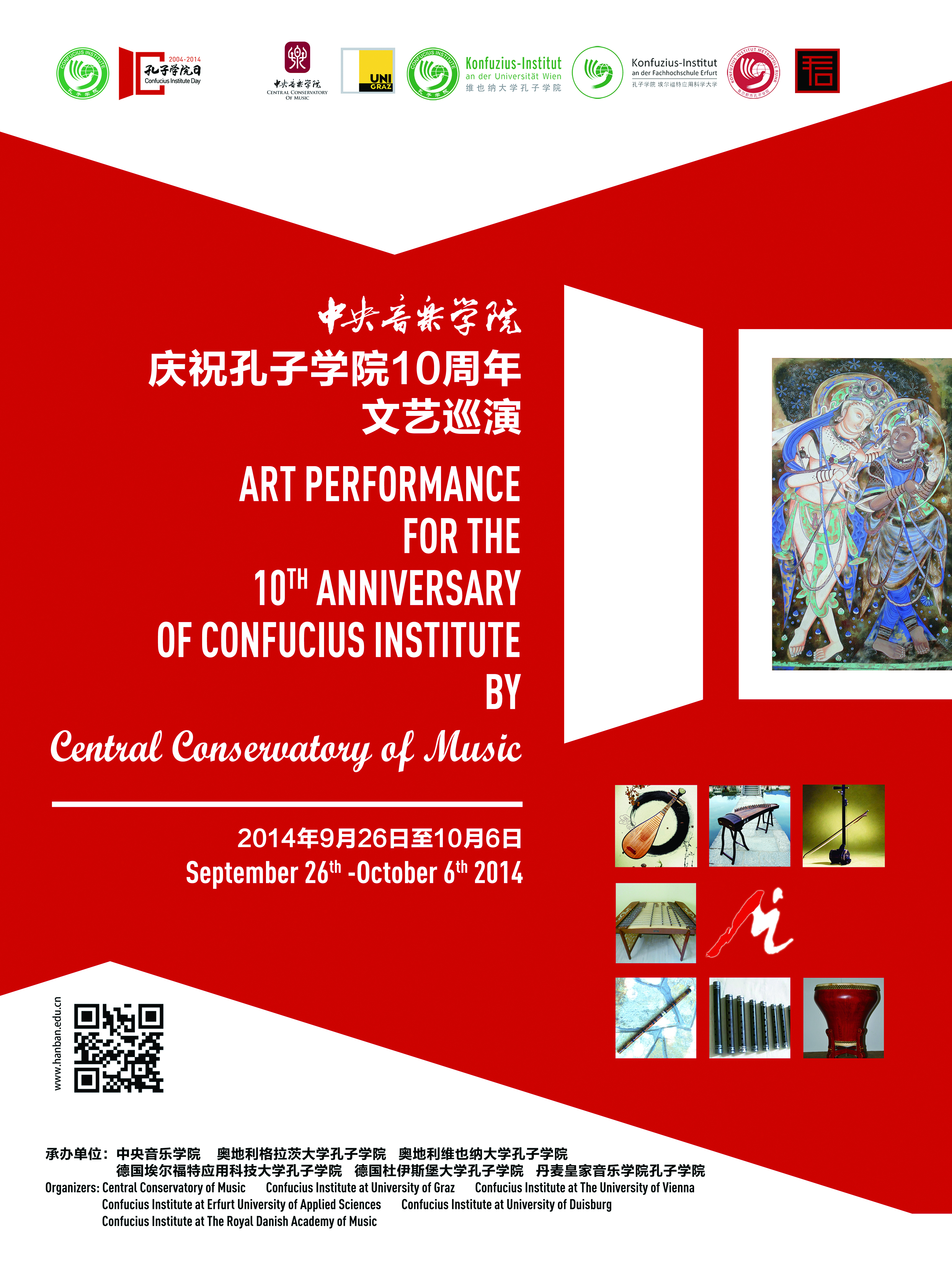 自2012年起,音乐孔子学院办公室及国际中文教育(音乐)实践与研究基地先后6次组织AC米兰中文官网师生艺术团,赴美国、奥地利、德国、丹麦、加拿大、冰岛、芬兰、挪威、瑞典、意大利、法国、比利时共12国25个城市的孔子学院及相关文化教育机构,举办39场专场音乐会和学术交流活动,受众1.9万余人,以专业的艺术水准、中西融合的创新曲目编排和良好的精神风貌弘扬中国优秀音乐文化,赢得各国嘉宾及观众一致好评。